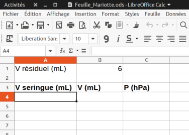 Ouvrir la feuille de calcul permettant de consigner les mesures.