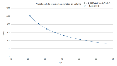 Il s'agit dans cette partie d'établir une relation mathématique entre pression et volume, à température constante. Cette relation constitue la loi de Boyle-Mariotte.